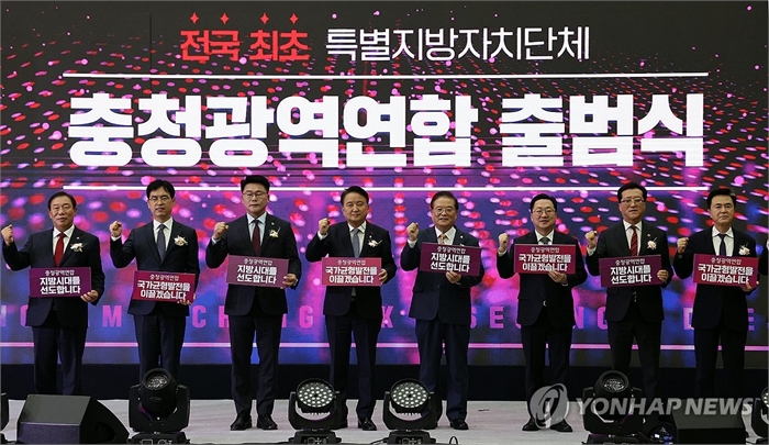 [충청광역연합 1년] ① 메가시티 완성 위해 뭉친 전국 첫 특별지자체 21개 사무 관장하며 지역연합 제도 개선 앞장…'5극 3특' 정책에도 발맞춰광역투어패스 등 관광분야서 다양한 시도…교통체계 등 다수 용역 진행 김영환 연합장 "충청인의 뜻 모은 1년…모두 잘 사는 지방시대 열 것" [※ 편집자 주 = 대전시, 세종시,