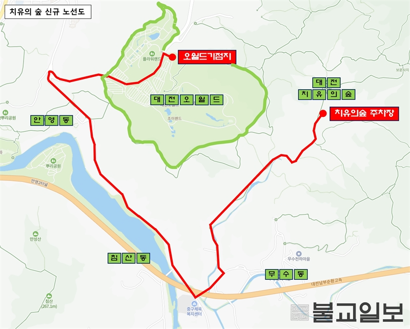 대전시는 치유의 숲 방문객의 접근성을 높이기 위해 시내버스 55번 노선을 신설하고, 봉산동기점지 일대 교통안전 강화를 위해 급행2번 노선의 정차 정류장을 추가 조정한다고 밝혔다. 이번 조치는 내년 1월 9일부터 시행된다. 55번 신규 노선은 치유의 숲을 찾는 시민과 방문객이 대중교통을 보다 편리하게 이용할 수 있도록 도
