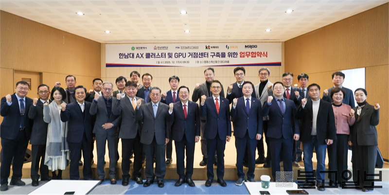 대전시는 17일 한남대학교, 한국정보통신기술협회(TTA), ㈜KT, 비케이비에너지㈜, ㈜엠아르오디펜스와 ‘한남대 AX 클러스터 및 고성능 AI GPU 거점센터’ 구축을 위한 업무협약을 체결했다. 이번 협약은 전 세계적으로 인공지능 기술 경쟁이 심화되는 가운데, 지역 내 연구기관과 AI 전문기업의 고성능 연산 자원 수요