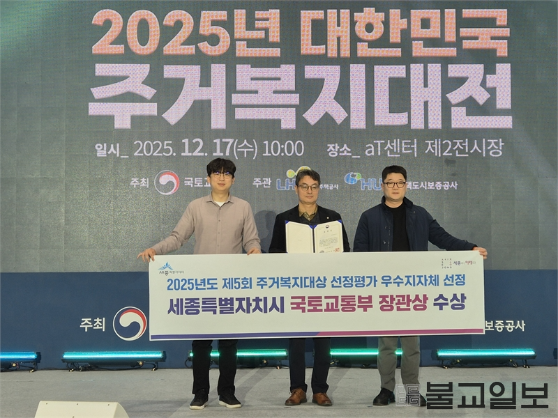 세종특별자치시(시장 최민호)가 국토교통부 주관 ‘대한민국 주거복지대전’에서 주거복지대상 우수지자체로 선정됐다. 국토교통부는 17일 서울 양재 aT센터에서 열린 ‘2025 대한민국 주거복지대전’에서 주거복지 분야 우수 지자체를 발표했으며, 세종시는 전국 10개 우수지자체 가운데 하나로 이름을 올렸다. 주거복지대상은 202