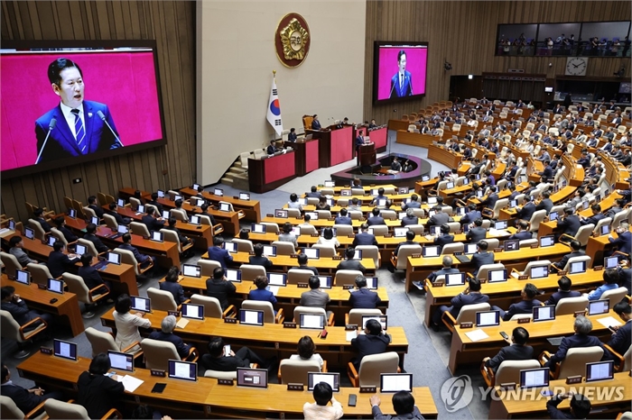 교섭단체 대표 연설하는 정청래 대표 (서울=연합뉴스) 황광모 기자 = 더불어민주당 정청래 대표가 9일 서울 여의도 국회에서 열린 본회의에서 교섭단체 대표연설을 하고 있다. 2025.9.9 hkmpooh@yna.co.kr