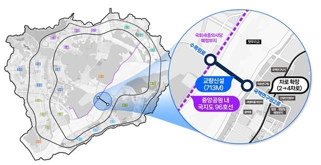 교량과 연결되는 국책연구원2로는 현재 2차선에서 4차선으로 확장된다.