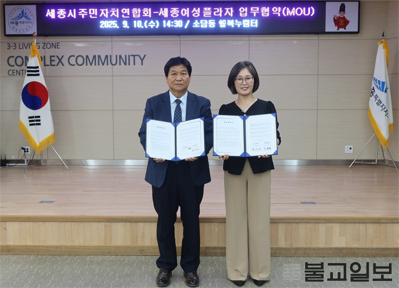 세종시사회서비스원이 운영하는 세종여성플라자가 10일 소담동 행복누림터에서 세종특별자치시 주민자치연합회와 성평등 인식 확산을 위한 협약을 체결했다. 이번 협약은 지역사회에 성평등 문화를 정착시키고 주민 참여 기반을 넓히기 위한 공동 실천의 장으로 마련됐다.