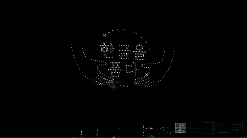 최 시장은 40만 세종시민을 대표해 ‘우리말·글 사용 선언’을 낭독하며 올바른 언어문화 확산을 다짐했다. 개막식의 대미는 400대의 드론이 세종대왕의 한글창제 정신을 형상화한 드론쇼로 장식돼 관람객의 탄성을 자아냈다.
