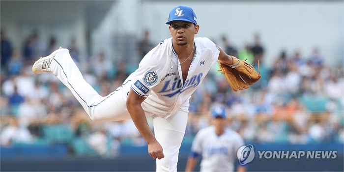 역투하는 삼성 가라비토 (대구=연합뉴스) 김현태 기자 = 26일 대구 삼성라이온즈파크에서 열린 2025 프로야구 한화 이글스와 삼성 라이온즈의 경기. 1회 초 삼성 선발투수 가라비토가 역투하고 있다. 2025.6.26 mtkht@yna.co.kr