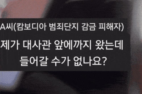 A씨는 "범죄단지에서 탈출한 전날 밤부터 계속 제발 와달라고 전화했다"라며 여러 번 범죄단지에서 감금 피해를 당했다고 설명했지만, 문이 열리지 않았다고 했다.