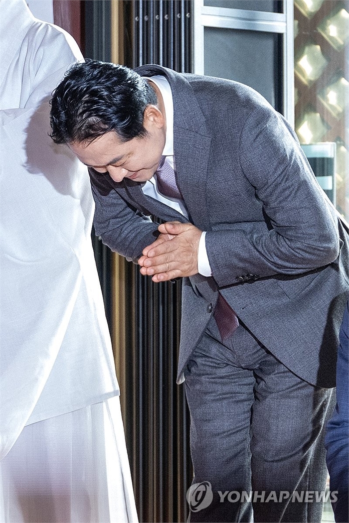 봉은사 대웅전 찾은 장동혁 대표 (서울=연합뉴스) 국민의힘 장동혁 대표가 21일 대한불교조계종 총무원장 진우스님을 예방하기에 앞서 서울 강남구 봉은사 대웅전에서 참배하고 있다. 2025.10.21 [국회사진기자단] photo@yna.co.kr