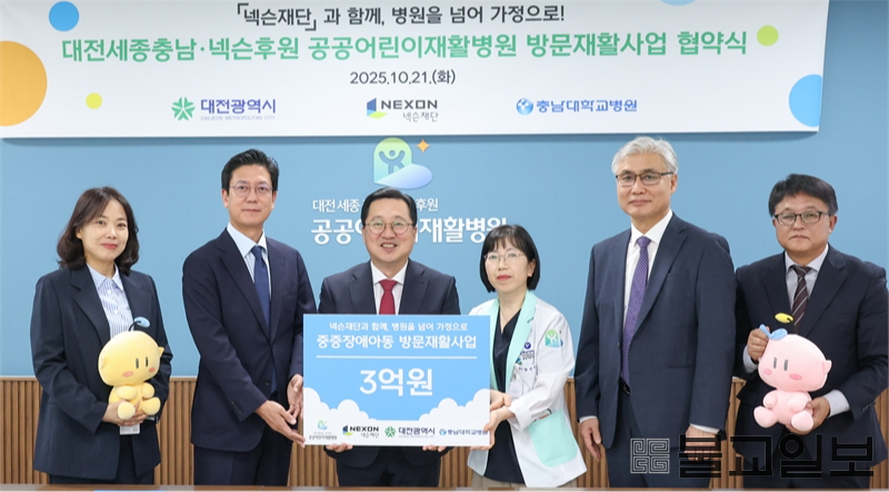 대전시와 넥슨재단(이사장 김정욱)이 중증장애아동의 치료 공백을 해소하고 재활의료 접근성을 강화하기 위해 손을 맞잡았다. 양 기관은 21일 공공어린이재활병원에서 「찾아가는 방문재활사업」 업무협약을 체결하고 본격적인 사업 추진에 나섰다.