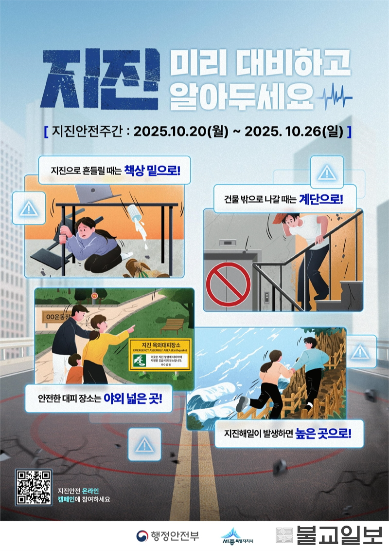 세종특별자치시가 10월 20일부터 26일까지 ‘2025년 지진안전주간’을 맞아 시민의 지진 대응 역량을 강화하기 위한 홍보와 캠페인을 추진한다.