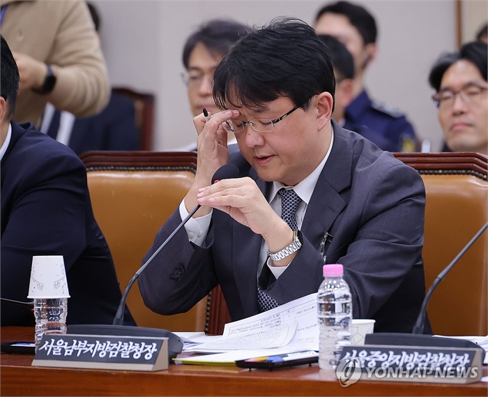 의원 질의 답변하는 김태훈 서울남부지검장 (서울=연합뉴스) 류영석 기자 = 김태훈 서울남부지검장이 23일 국회 법제사법위원회 전체회의에서 의원 질의에 답변하고 있다. 2025.10.23 ondol@yna.co.kr