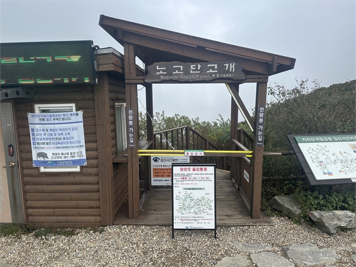 지리산 종주 시작점 노고단고개 통제 사진 [지리산국립공원 전남사무소 제공. 재판매 및 DB 금지]