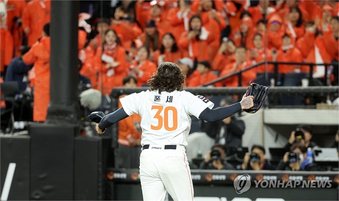 (기사발신지=연합뉴스) 이대호 기자 = 프로야구 정규리그를 지배했던 한화 이글스 1선발 투수 코디 폰세가 가을야구 두 번째 등판에서 에이스 본능을 뽐냈다.