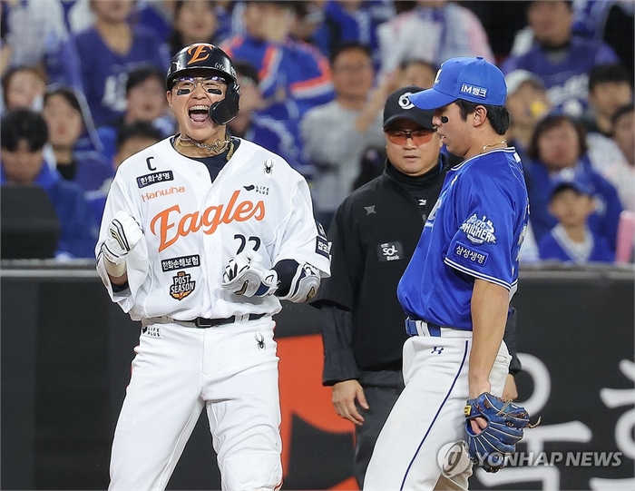 1사 후 문현빈의 2루타와 노시환의 중전 안타로 1사 1, 3루가 됐고 채은성의 우월 2루타 때 삼성 우익수 김성윤의 송구 실책이 나오면서 4-1, 1사 3루 기회가 이어졌다.