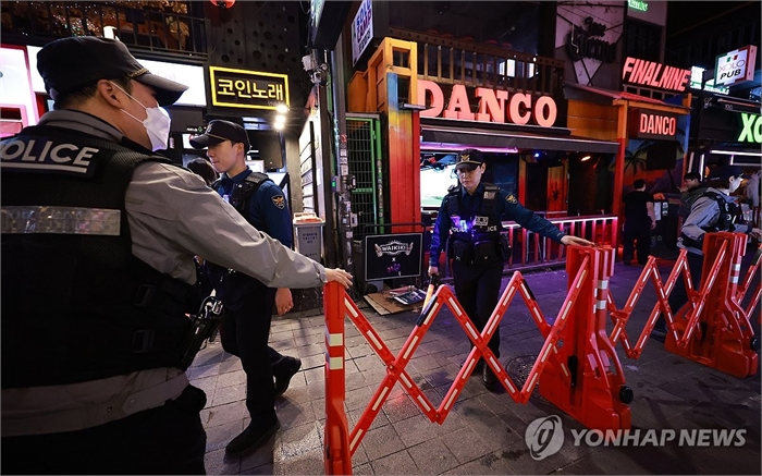 이태원 거리 보행자 중앙분리대 점검 (서울=연합뉴스) 홍해인 기자 = 10·29 이태원 참사 3주기를 앞둔 24일 서울 용산구 이태원 세계음식문화의 거리 일대에서 서울경찰 기동순찰대원들이 핼러윈 데이를 앞두고 다중밀집 예방 순찰을 하며 거리에 설치된 이동식 중앙 분리대를 점검하고 있다. 2025.10.24 hihong@yna.co.kr
