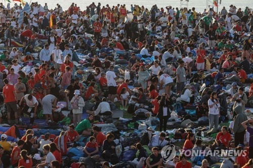 2023년 세계청년대회 인파 (리스본 AFP=연합뉴스) 2023년 8월 6일(현지시간) 세계청년대회가 열리고 있는 포르투갈 수도 리스본의 테조 공원에 방문자들이 미사를 앞두고 모여 있다. [자료사진]