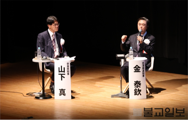 이어 열린 대담에서는 야마시타 지사가 좌장을 맡고, 김태흠 지사와 정재윤 교수, 일본 작가 하세 세이슈, 센다 미노루 나라현국립도서정보관장이 참여해 일본 고대 율령제와 도시 제도 속 백제계 도래인의 역할을 심층 논의했다.