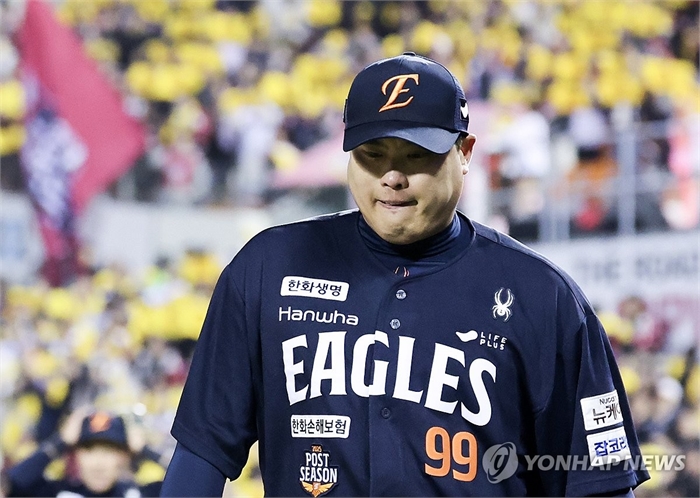 3회 말 LG에게 2점을 허용한 한화 선발투수 류현진이 더그아웃을 향하고 있다. 2025.10.27 hwayoung7@yna.co.kr