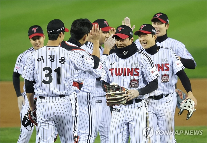 LG, 2차전 승리 (서울=연합뉴스) 신준희 기자 = 27일 서울 잠실야구장에서 열린 2025 프로야구 한국시리즈 한화 이글스 대 LG 트윈스 2차전이 LG의 승리로 13대5 승리로 끝났다.