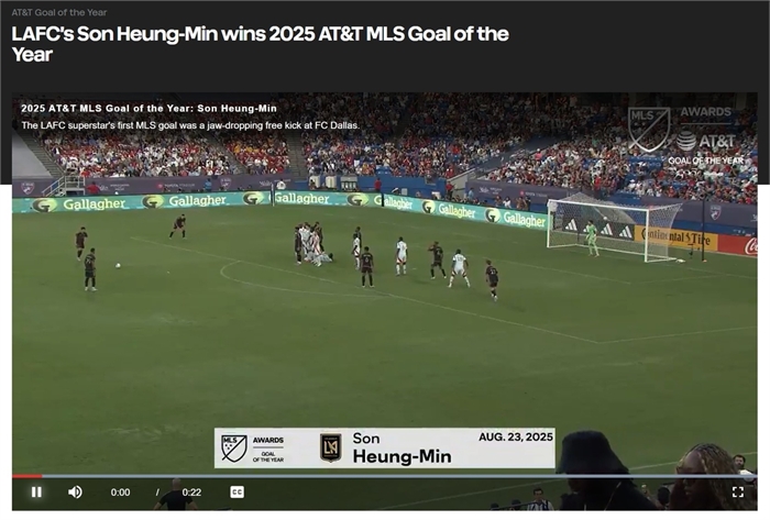 MLS 사무국은 28일(한국시간) 홈페이지를 통해 "손흥민의 LAFC 데뷔골이 역사책에 영원히 남게 됐다"며 "한국의 슈퍼스타가 8월 24일(매치데이 30) FC댈러스전에서 터트린 놀라운 프리킥이 '2025 AT&T MLS 올해의 골'의 영예를 차지했다"고 발표했다.
