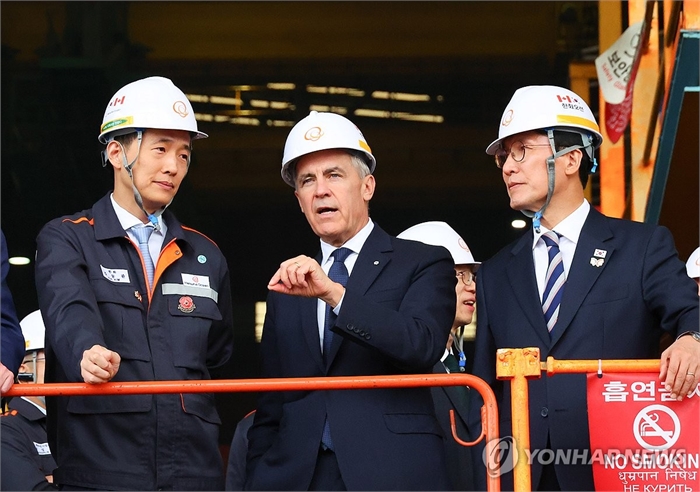 앞서 카니 총리는 이재명 대통령과의 회담에서 "세계 최고 수준인 한국의 조선 역량을 직접 눈으로 확인하길 기대한다"며 조선소 방문에 대한 기대감을 드러낸 바 있다.