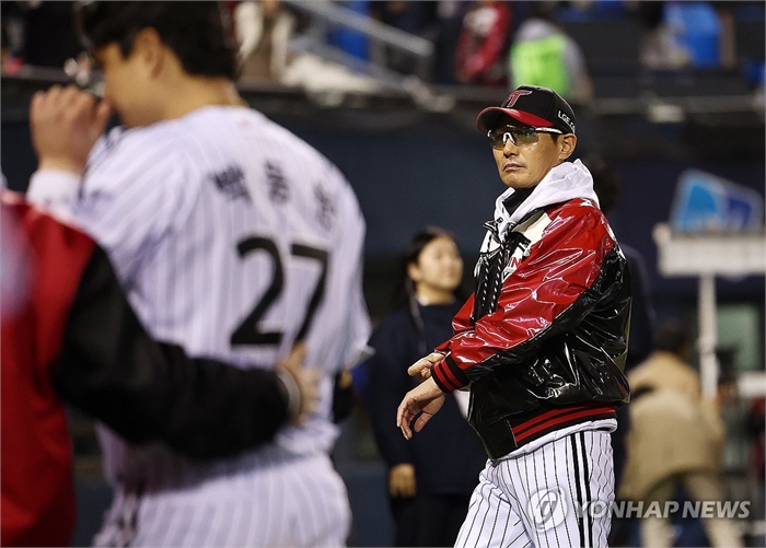 한국시리즈 2차전, LG승리 (서울=연합뉴스) 윤동진 기자 = 27일 서울 잠실야구장에서 열린 2025 프로야구 한국시리즈 한화 이글스 대 LG 트윈스 2차전. 13대 5 LG의 승리로 경기가 끝난 후 염경엽 감독이 더그아웃으로 향하고 있다. 2025.10.27 mon@yna.co.kr