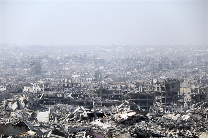 거대한 폐허로 변한 가자시티 (셰자이야[가자지구]=연합뉴스) 김동호 특파원 = 5일(현지시간) 가자지구 북부 셰자이야의 한 이스라엘군 주둔지에서 내려다본 가자시티.