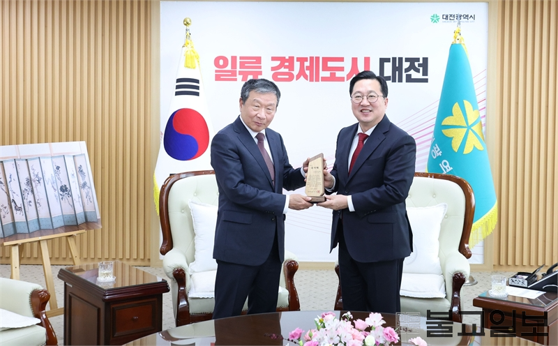한편 이날 감사패 수여식에는 이장우 시장을 비롯해 이종구 이사장, 문화예술관광국장, 고암미술문화재단 대표 등 4명이 참석해 기념촬영과 환담을 나누며 이응노 예술정신의 가치와 대전시 문화예술 발전 방향에 대해 의견을 교환했다.