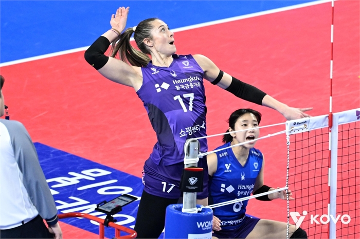 공격하는 흥국생명의 레베카 라셈 [한국배구연맹 제공. 재판매 및 DB 금지]