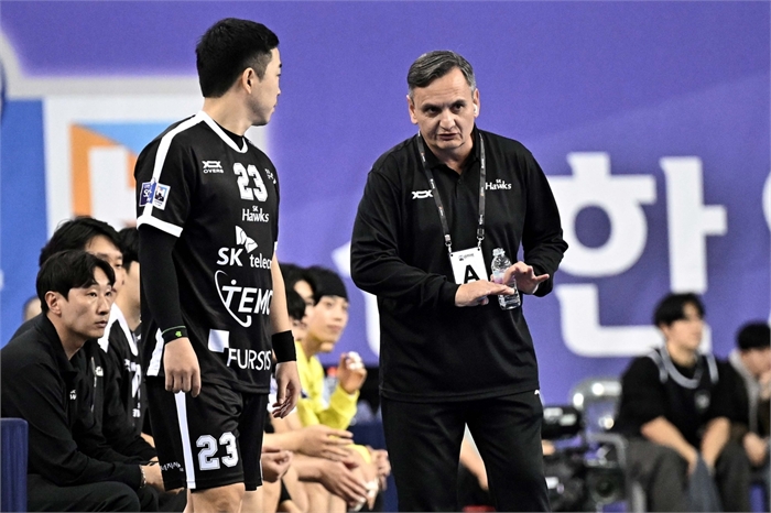 2024-2025시즌 팀을 지휘하는 알바레스 감독(오른쪽) [한국핸드볼연맹 제공. 재판매 및 DB 금지]