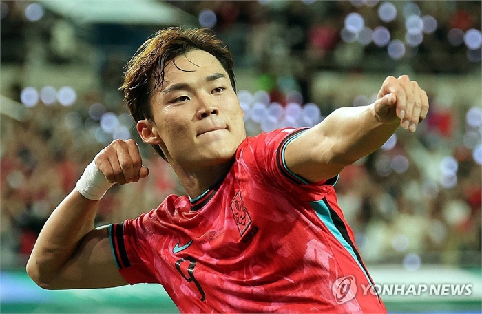 오현규가 추가골을 넣은 뒤 세리머니를 하고 있다. eastsea@yna.co.kr