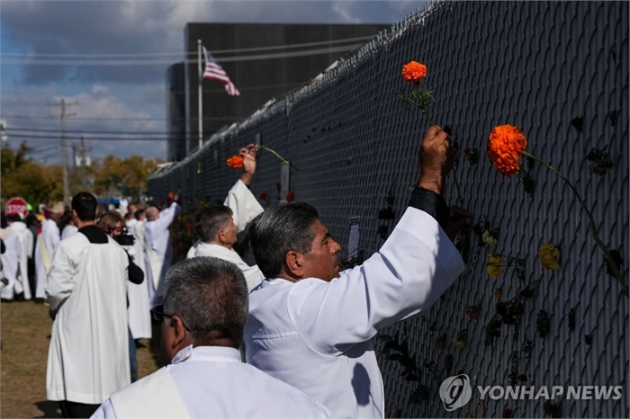미국 ICE 시설에 메리골드 꽃 장식하는 미국 가톨릭 성직자들 [로이터=연합뉴스. 재판매 및 DB 금지]
