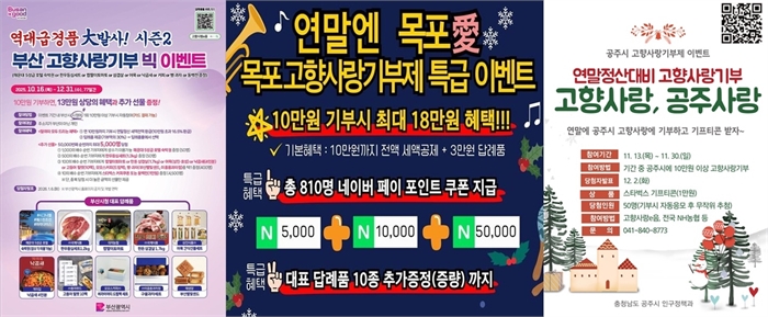 부산·목포·공주의 연말 이벤트 안내문 [고향사랑e음 홈페이지 갈무리. 재판매 및 DB 금지]