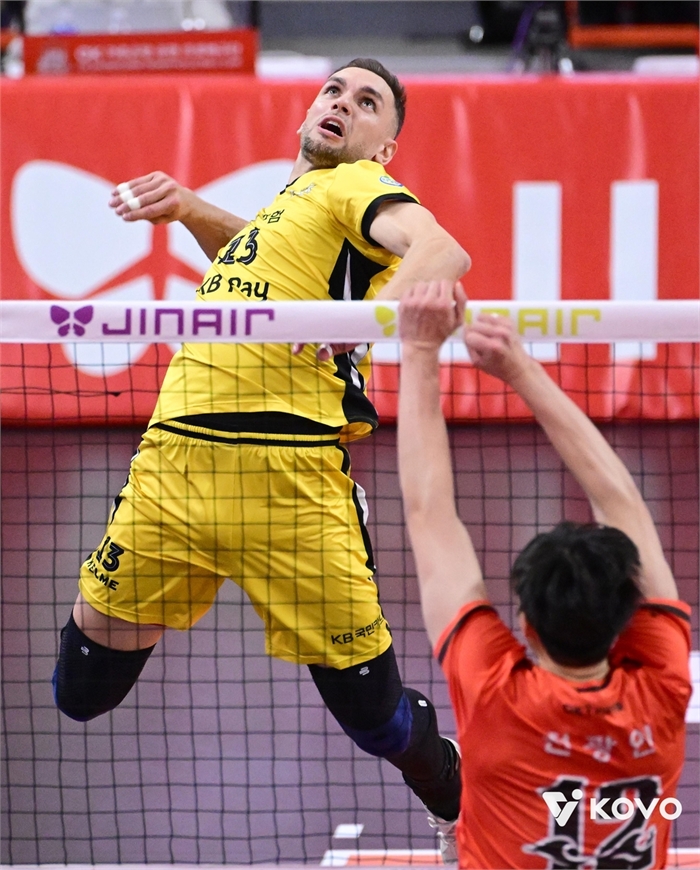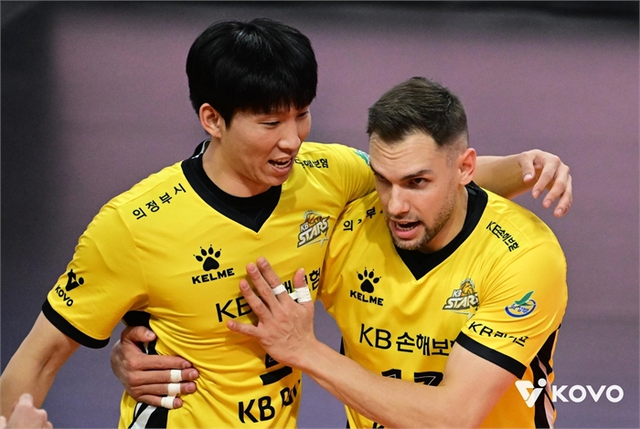 KB손해보험은 모하메드 야쿱(등록명 야쿱)이 26득점, 안드레스 비예나(등록명 비예나)가 25득점으로 공격을 이끌었다.