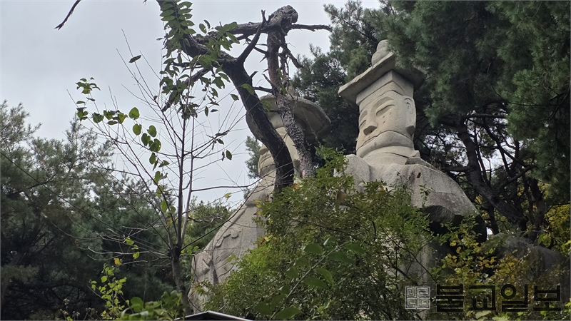 용암사가 자리한 장지산은 조선 시대 한양에서 의주·연경으로 향하는 의주대로의 주요 길목이었다. 문물과 사신, 상인들이 이 길을 오가며 조선의 사상과 문화가 이동했고, 이정표 역할을 했던 쌍미륵은 자연스럽게 길 위의 사람들에게 휴식과 신앙의 대상이 되었다. 17m에 달하는 거불 두 기는 겨울이면 산 능선을 따라 명확한 윤곽을 드러내고, 여름에는 솔숲 사이로 은은히 그 모습을 비추며 순례자의 시선을 이끈다.
