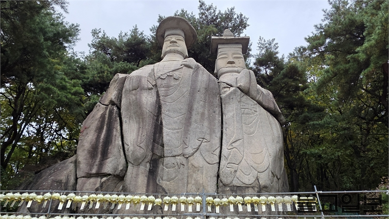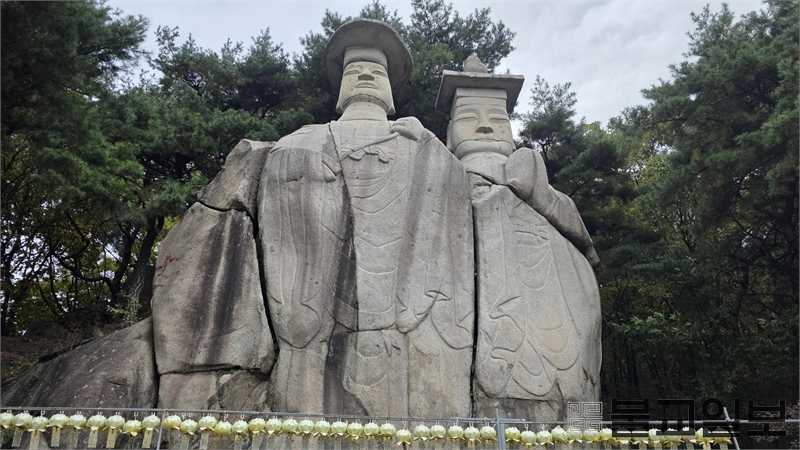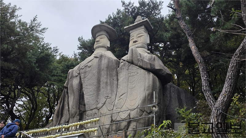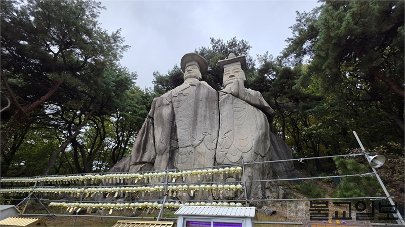 파주 광탄면 장지산 자락에 들어서면 가장 먼저 시야를 사로잡는 것은 절집의 기와 지붕이 아니다. 국도 78번을 따라 걷거나 차를 몰아 오르다 보면, 어느 순간 산등성이 위로 높이 솟은 거대한 두 불상의 윤곽이 드러난다. 바로 보물 제93호 ‘용미리 마애이불입상’, 일명 ‘쌍미륵’이다. 먼 길을 오가던 이들에게는 자연이 만든 이정표이자 신앙적 표상이었으며, 오늘을 살아가는 순례자에게는 과거와 현재를 잇는 상징적 문장이다.