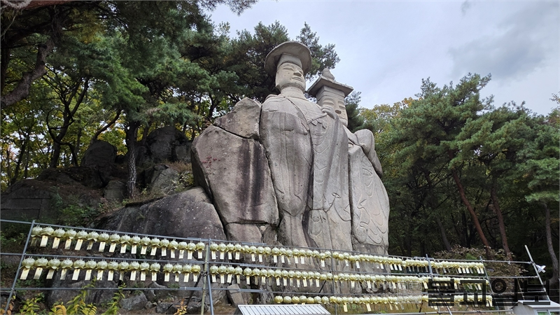 작은 절집과 거대한 석불이 만들어낸 독특한 대비