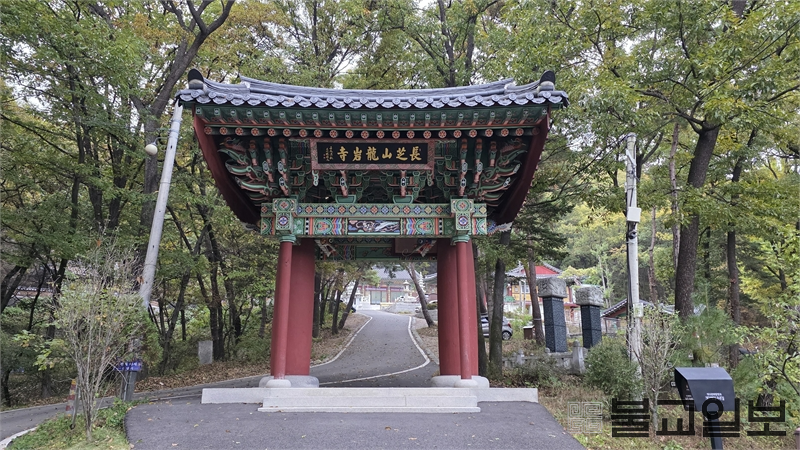 용암사 순례의 마지막은 다시 산 아래에서 올려다보는 장지산의 능선이다. 바람에 흔들리는 솔잎의 소리, 범종각 풍경이 울리는 청아한 금속음, 대웅보전 처마 아래 드리워진 빛. 그 모든 감각이 작은 사찰의 조용한 숨결을 만들어낸다.