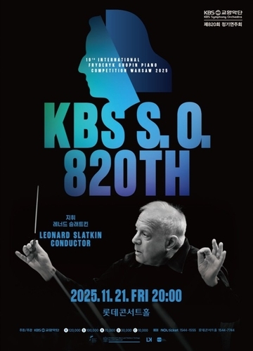 KBS교향악단 제820회 정기연주회 (서울=연합뉴스) 박원희 기자 = 21일 서울 롯데콘서트홀에서 열린 KBS교향악단의 제820회 정기연주회에서 지휘자 레너드 슬래트킨과 단원들이 관객들에게 인사하고 있다. 2025.11.21. encounter24@yna.co.kr