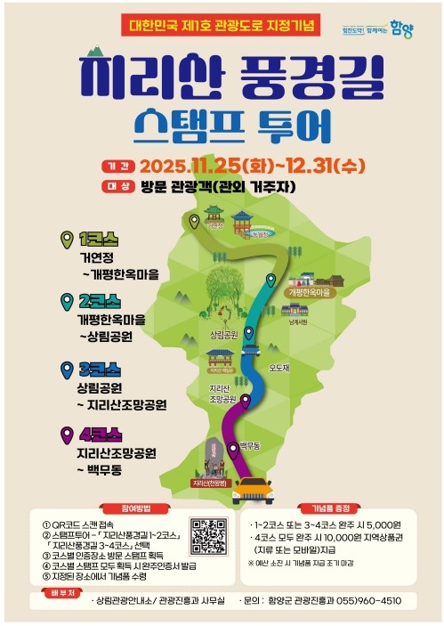 군은 이번 프로그램으로 관광객이 지리산 풍경길을 더욱 깊이 있게 즐기고, 주변 지역의 체류시간과 소비가 자연스럽게 확대되는 효과를 기대한다.