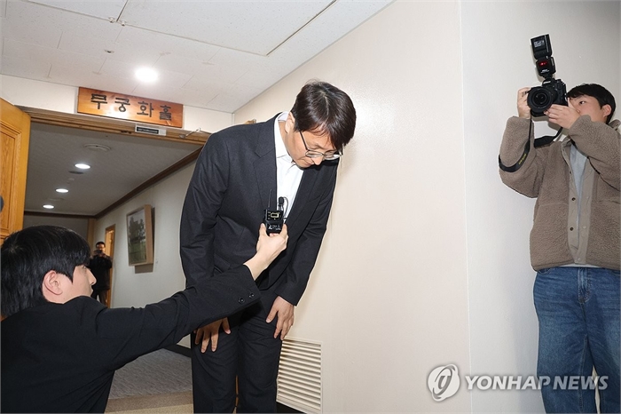 공개 사과하는 박대준 쿠팡 대표 (서울=연합뉴스) 한종찬 기자 = 30일 정부서울청사에서 쿠팡 관련 긴급 관계부처 장관회의가 열린 가운데 박대준 쿠팡대표가 회의장을 나서며 공개 사과하고 있다. 2025.11.30 [공동취재] saba@yna.co.kr