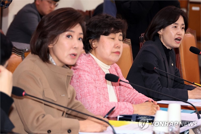 '내란 전담 재판부' 설치법 추진 항의하는 나경원 의원 (서울=연합뉴스) 김주성 기자 = 국민의힘 나경원 의원이 1일 서울 여의도 국회 법제사법위원회에서 열린 법안심사제1소위원회의에서 여당 주도의 '내란 전담 재판부' 설치법 논의에 반대하며 더불어민주당 소속 김용민 소위원장에게 항의하고 있다. 2025.12.1 utzza@yna.co.kr