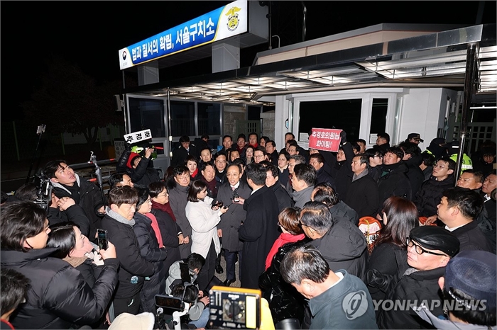 당 지도부 영하 추위속 밤새 구치소 앞 대기…장동혁 눈시울 붉히기도