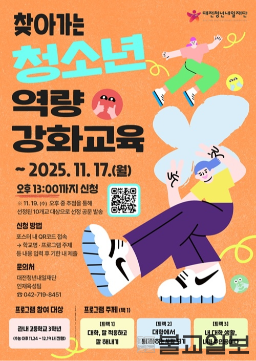 이번 프로그램은 12월 첫째 주 대전제일고를 시작으로 대전관저고, 대전여자상업고 등에서 운영되며, 고등학교 3학년을 대상으로 ‘대학생활 미리보기’와 ‘청소년 성장 토크콘서트’ 두 가지 형태로 진행된다.