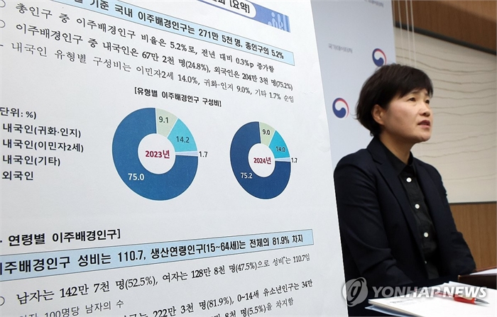 작년 이주배경인구는 271만5천명으로, 총인구(5천180만6천명)의 5.2%를 차지했다.