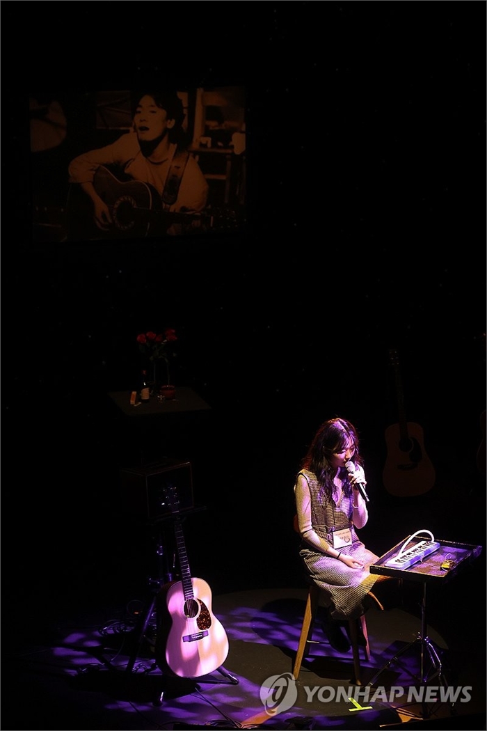 제3회 김광석 노래상 경연대회 2025년 1월 6일 서울 대학로 아르코꿈밭극장에서 열린 제3회 김광석 노래상 경연대회에서 참가자가 김광석의 노래를 부르는 모습. [연합뉴스 자료 사진·재판매 및 DB 금지]