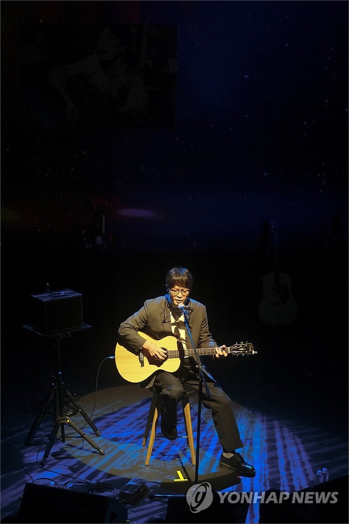 김광석 노래 부르는 박학기 2025년 1월 6일 가수 박학기가 서울 대학로 아르코꿈밭극장에서 열린 제3회 김광석 노래상 경연대회에서 김광석의 노래를 부르는 모습 [연합뉴스 자료 사진·재판매 및 DB 금지]