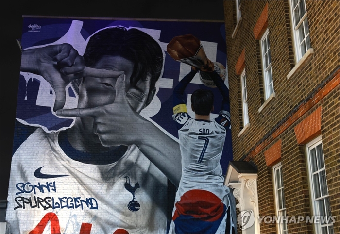 토트넘 하이로드 건물 벽에 마련된 손흥민 벽화 [EPA=연합뉴스]