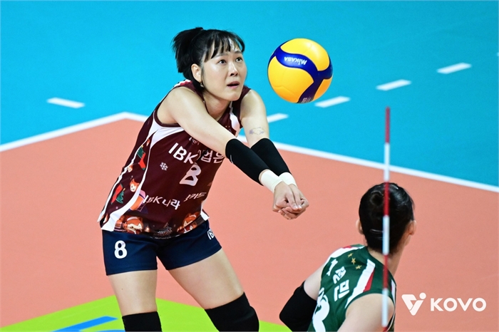 리시브하는 기업은행의 리베로 임명옥 [한국배구연맹 제공. 재판매 및 DB 금지]