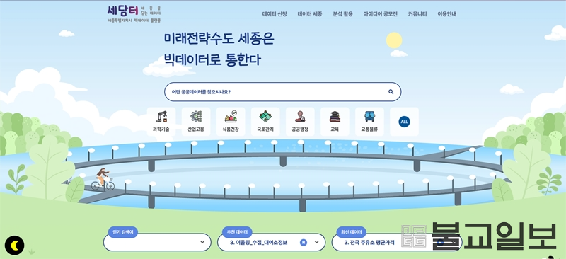 세종특별자치시가 시민 누구나 쉽고 편리하게 데이터를 활용할 수 있도록 ‘세종시 빅데이터 개방형 플랫폼’을 ‘세담터(세종을 담는 데이터)’로 새롭게 개편했다.