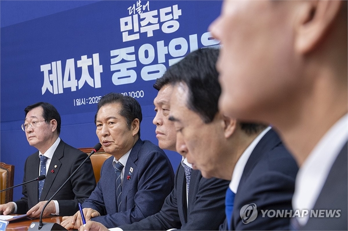 최고위서 발언하는 정청래 대표 (서울=연합뉴스) 황광모 기자 = 더불어민주당 정청래 대표가 15일 서울 여의도 국회에서 열린 최고위원회의에서 발언하고 있다. 2025.12.15 hkmpooh@yna.co.kr